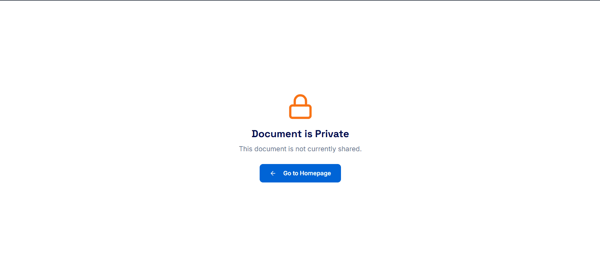 When a document is set to Private access, the sharing link is not live. Only the document owner can view the guide.