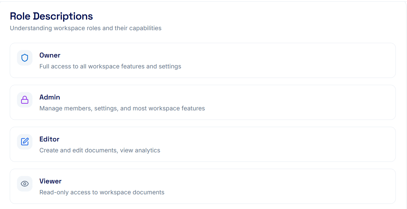 Editor Access: Give to teammates who are creating new content, updating existing guides, or viewing analytics.