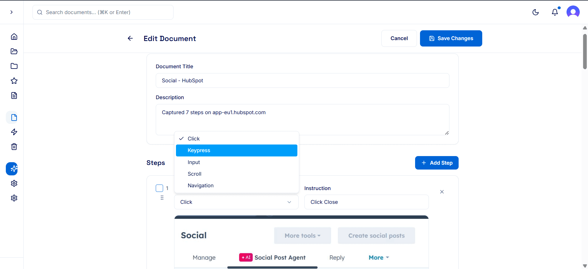 After creating a document, you can easily edit its steps, titles, and screenshots. The editing tools allow you to refine your guide, add missing details, or update visuals for clarity.
