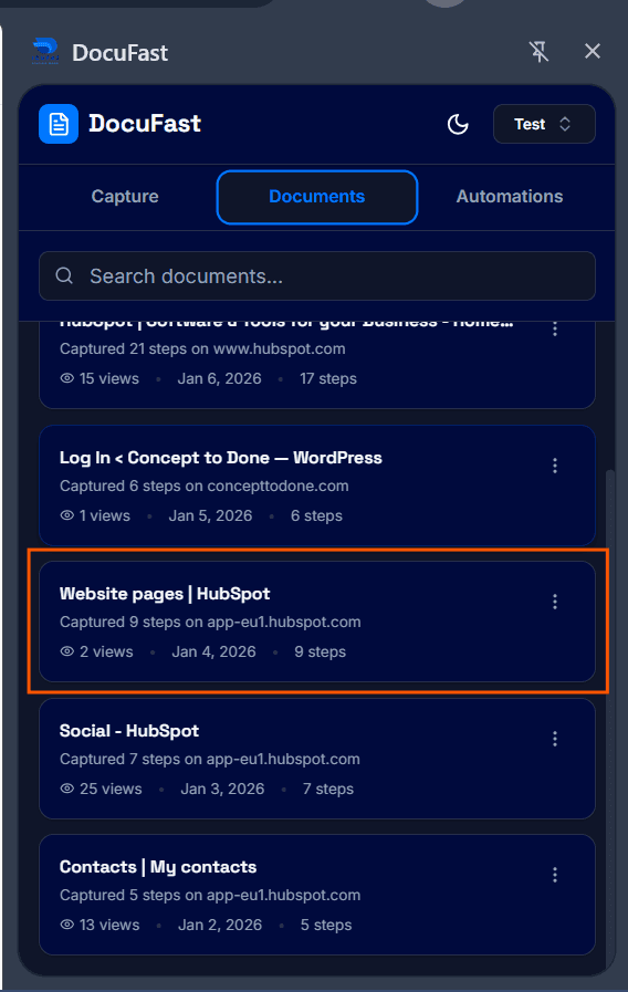 Recording a Teach Me guide in DocuFast is simple and works the same way as using Capture. Follow these steps to create clear, interactive guides for your team.