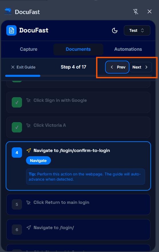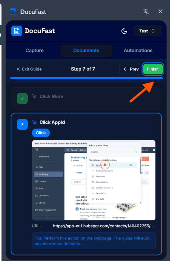 Once all steps are completed, click Finish to end guide mode.
