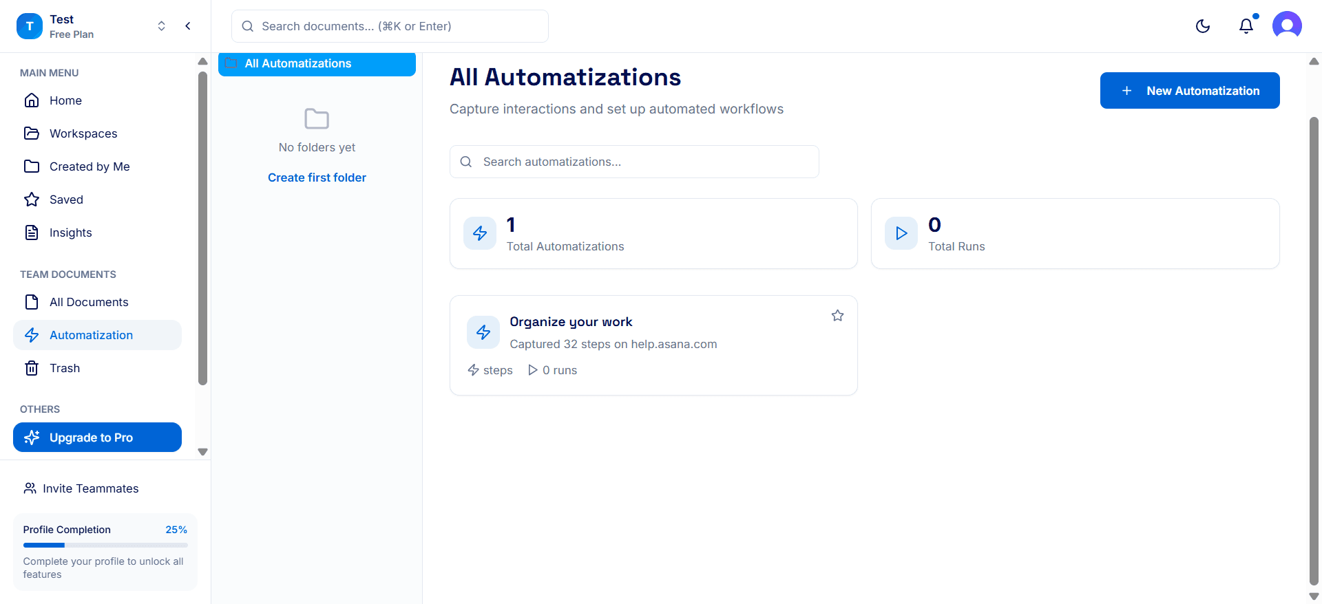 Automatizations include documents generated automatically by DocuFast. From here, you can: