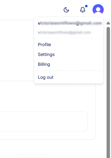 Your profile picture at the top right of the dashboard provides quick access to key actions. Clicking it allows you to: